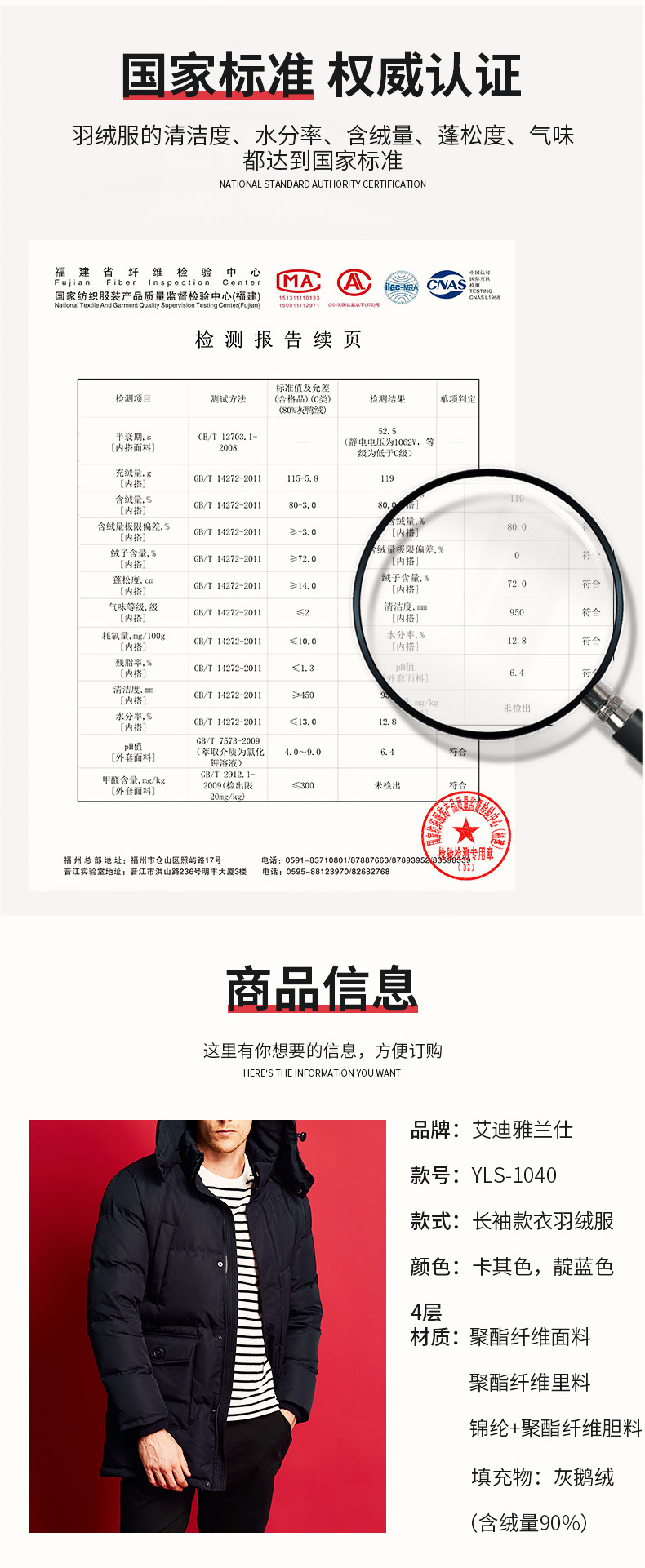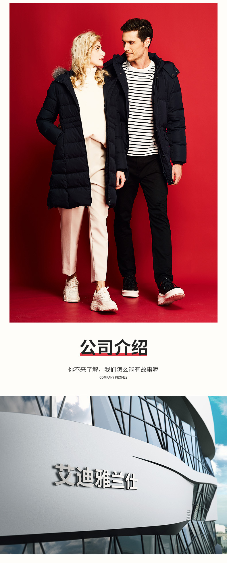 雅蘭仕《艾迪雅蘭仕》是著名品牌羽絨服公司,集羽絨服廠家、羽絨服供應商、羽絨服批發商、羽絨服零售商于一身。公司設計、開發、專業生產高品質羽絨服飾及床品系列產品,主要產品有:男女裝、童裝羽絨服,羽絨背心,羽絨被。 雅蘭仕羽絨服,高品質追求,四層造藝,可洗衣機洗滌,清洗簡單不費力;360度立體技術,清洗后的保暖效果保持不變。